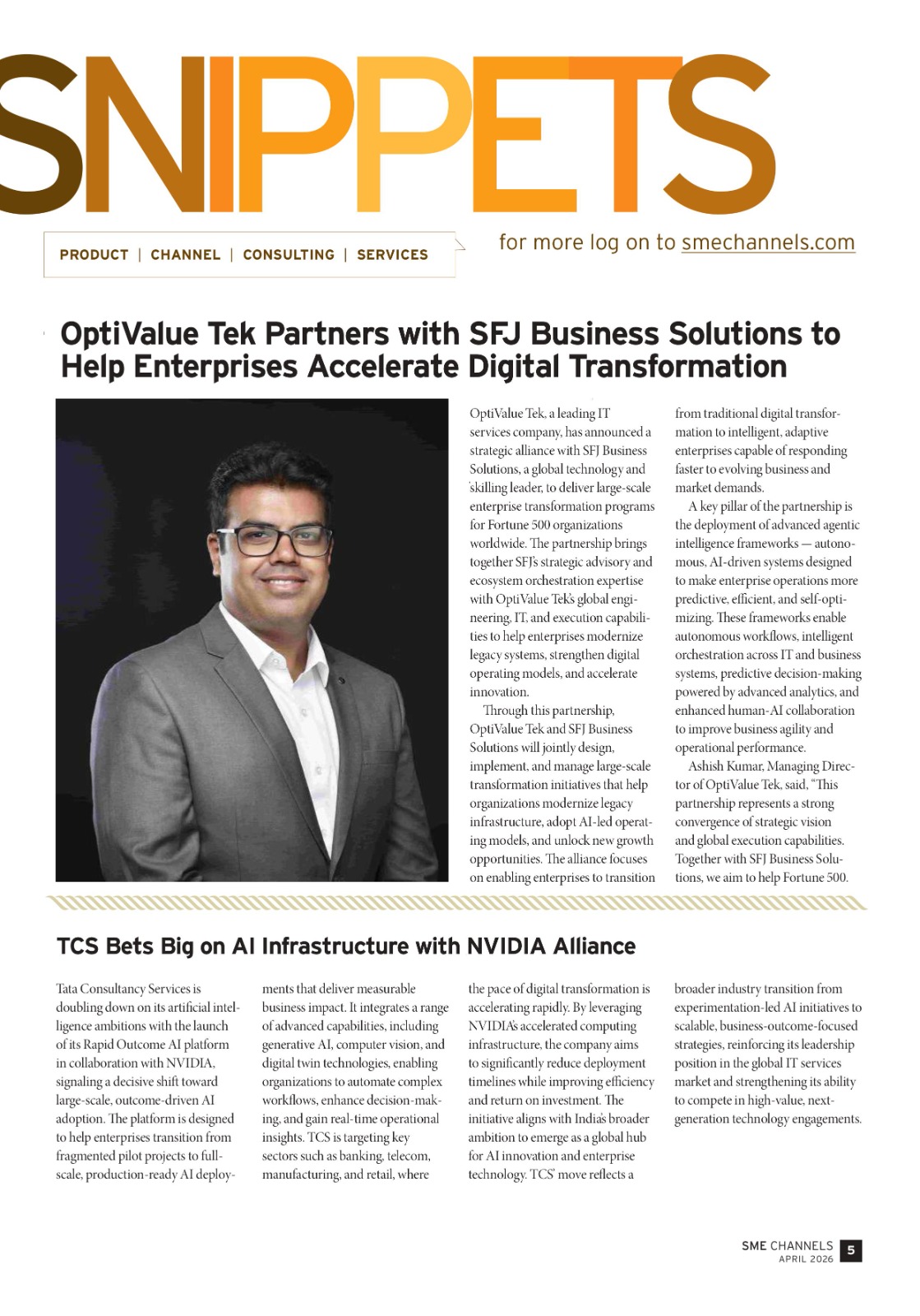 OptiValue Tek and SFJ Business Solutions have formed a global strategic alliance to deliver AI-led enterprise transformation programs for Fortune 500 companies, focusing on modernizing legacy systems, enhancing digital operating models, and enabling intelligent, autonomous business operations.